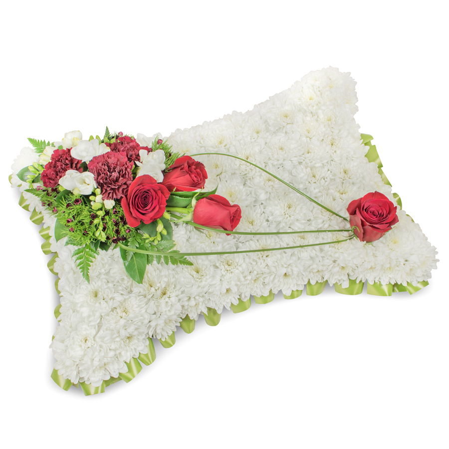 Present your sincere condolences with a floral masterpiece crafted to honor cherished memories. Our arrangement features carefully chosen red roses, white chrysanthemums, white freesias, dark red carnations, dianthus, and bear grass, all harmoniously arranged to evoke deep emotion. The interplay of bold and subtle hues creates an artistic statement that speaks volumes.